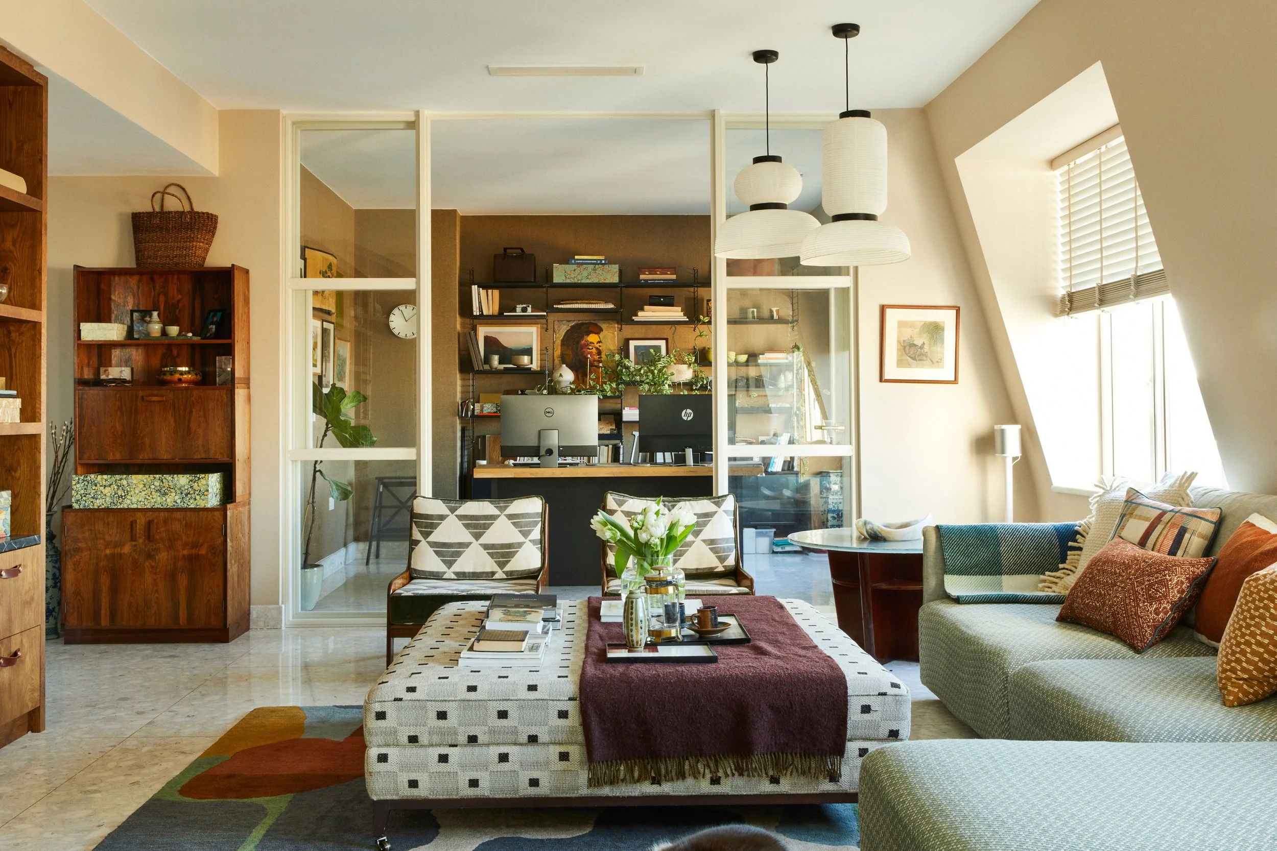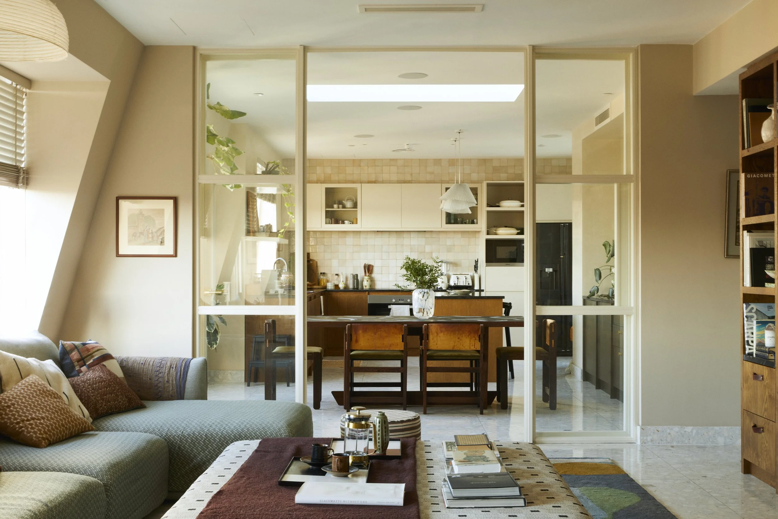 The redesign of this top-floor apartment was born from the wider refurbishment of a 1920s office building and reimagined it into a private, light-filled space with contrast and flow. We built with a quiet, neutral base and layered on rich tones to bring a sense of depth and intimacy.
